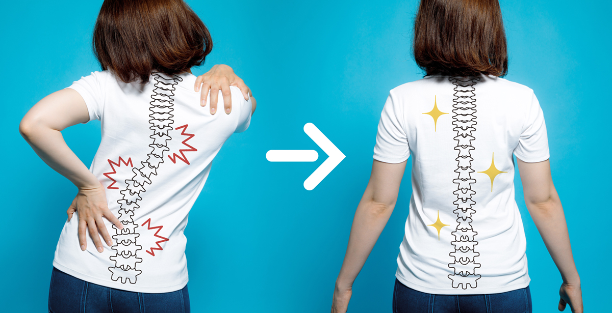 chiropractic before after image. from bad posture to good posture. woman’s body and backbone.