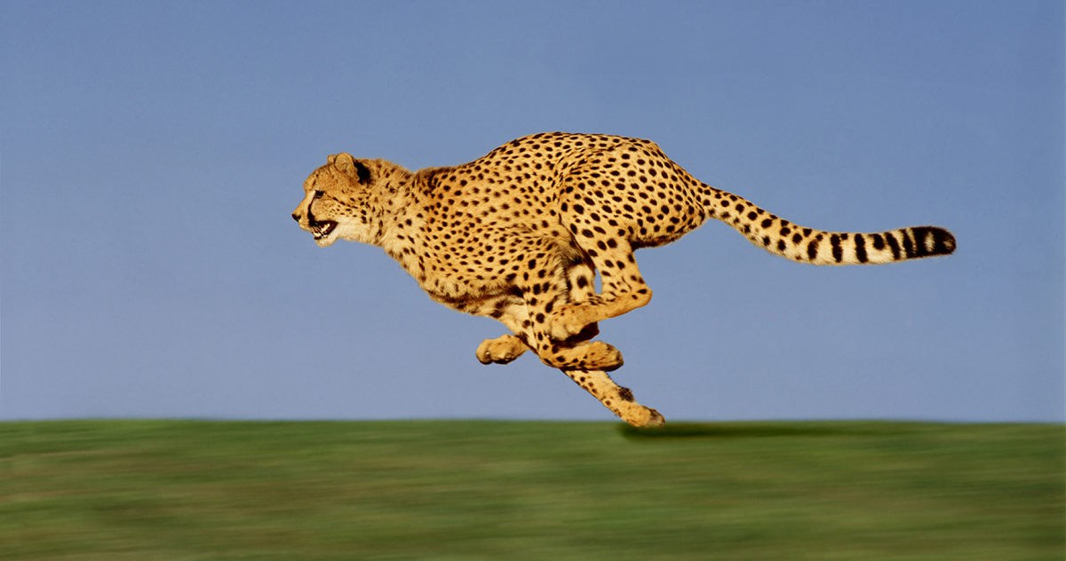 CHEETAH acinonyx jubatus, Adult running through Savannah