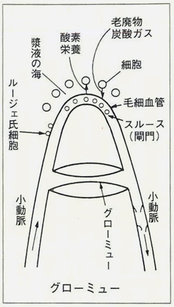 これは毛細血管一本につき必ず一本ついているものですが、老齢化するとその働きが悪くなり、また糖尿病の場合は溶けてなくなったり、動脈硬化の場合は硬化して役に立たなくなるなど、生活習慣病にはグローミューの障害があるのです。