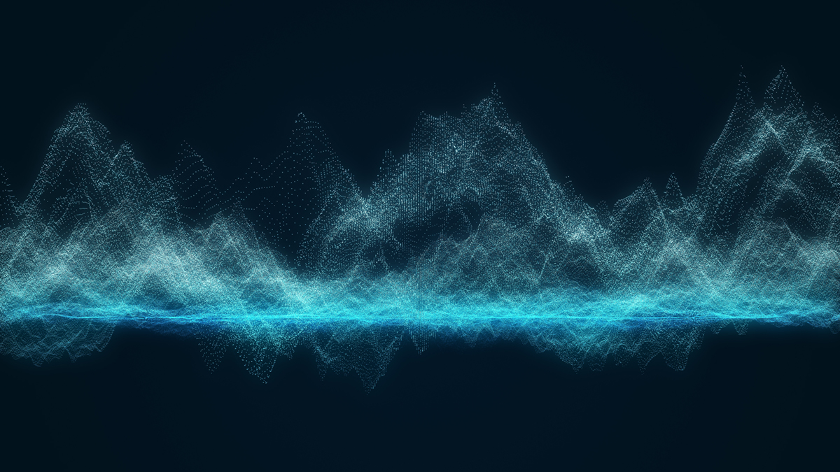 Abstract Digital Mountain Particle Wave Life Stream Pulse Technology Network Dot Background.
