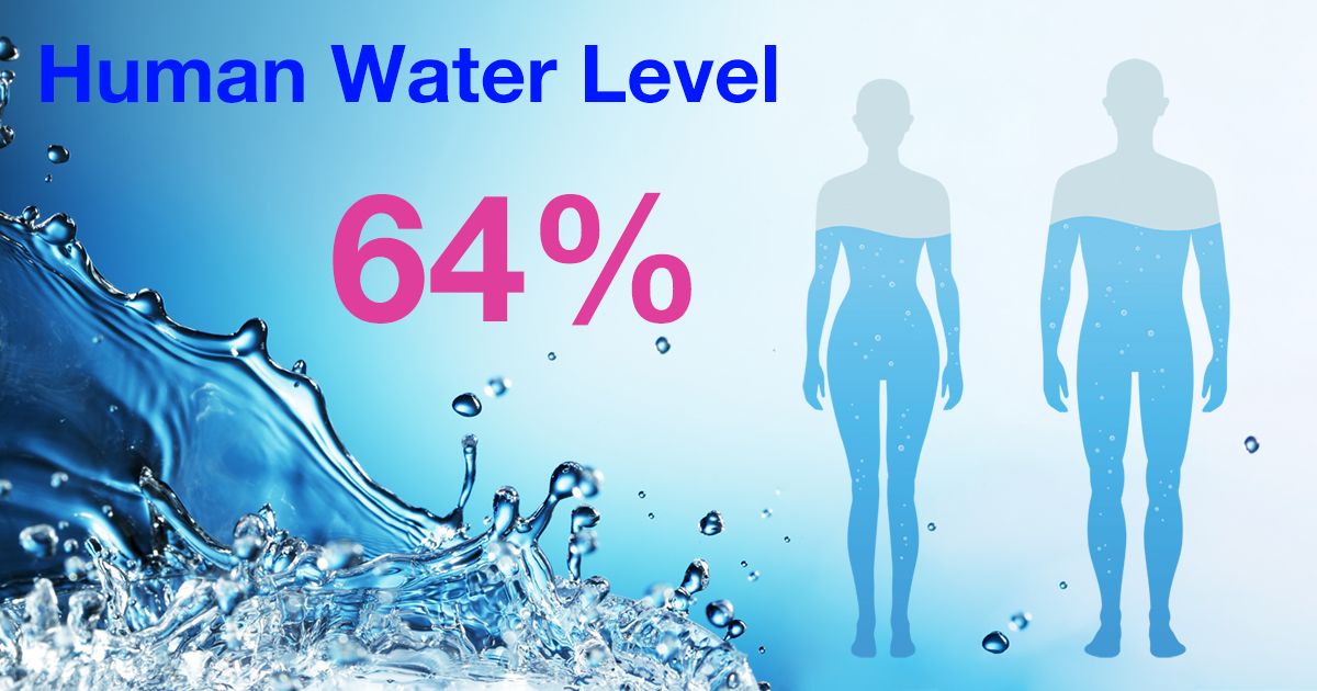 こんなに大量の水が一体どこにあるのか?と疑問に思われた方は、「人体の構成成分の64%が水である」ことを思い出してください。