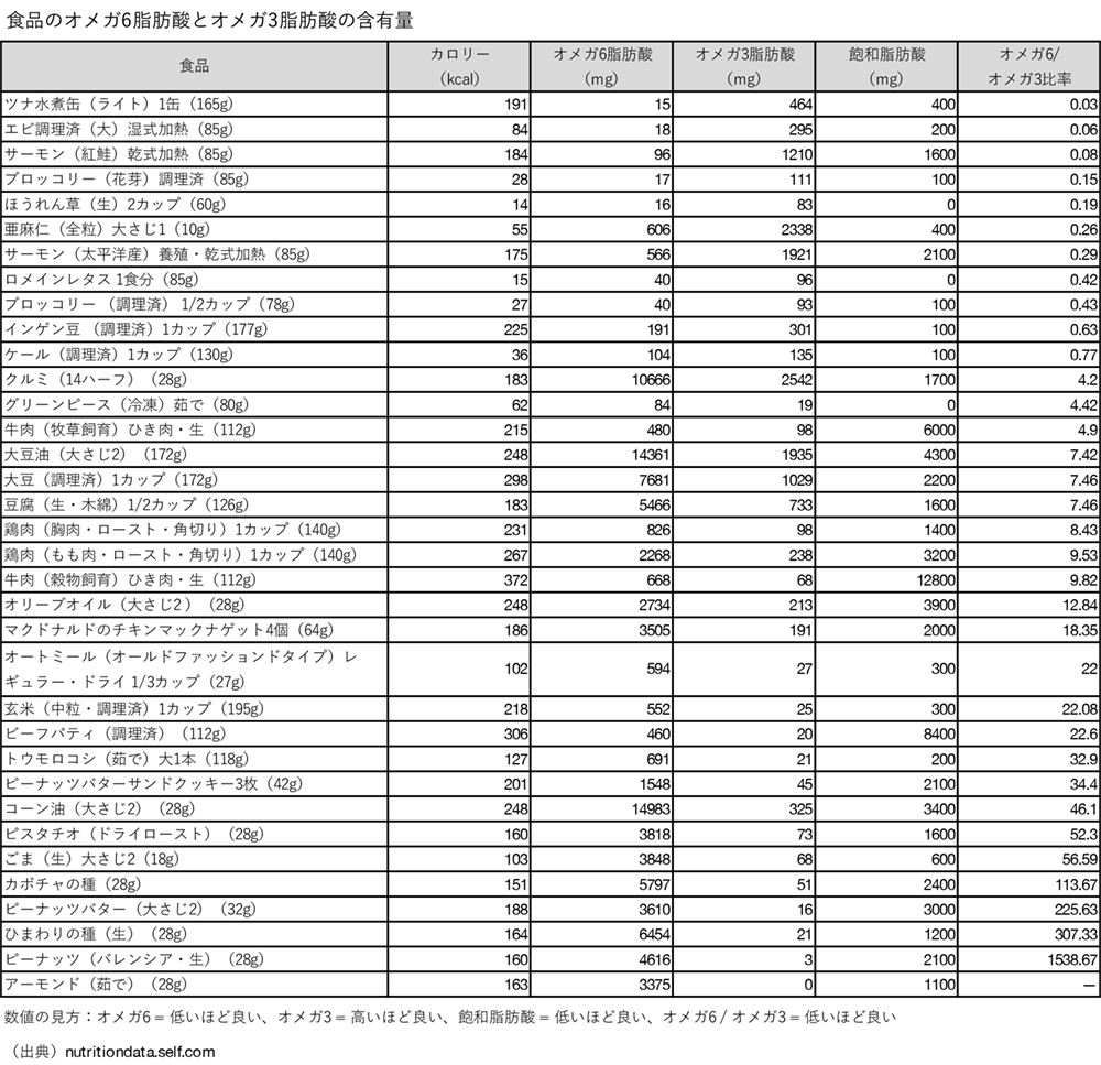 それが現在はおよそ20対1となり、加工食品を避けていても、魚をあまり食べず、オメガ3が豊富な魚油のサプリメントを摂っていなければ、おそらく10対1程度ではないかと考えられています。