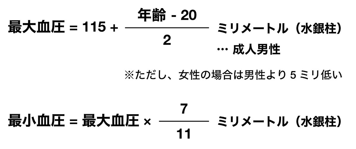 通常、成人男性では150ミリ(水銀柱)以上を高血圧としていますが、西医学の正常血圧は次の式で求めます。