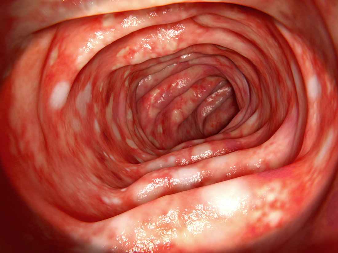 Colon affected by ulcerative colitis, 3d rendering.