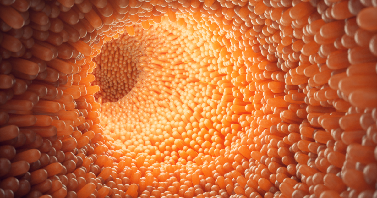 3D illustration close-up Intestinal villi. Intestine lining. Microscopic villi and capillary. Human intestine. Concept of a healthy or diseased intestine.