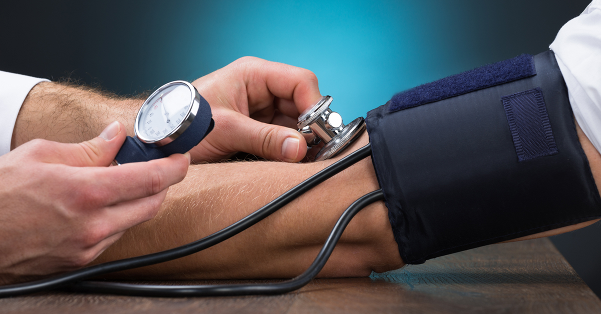 Cropped image of male doctor checking blood pressure of patient at table
