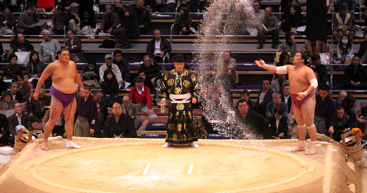 大相撲の力士がまく塩には「土俵を浄める」意味があり、葬式の際の塩にも同じ意味があります。
