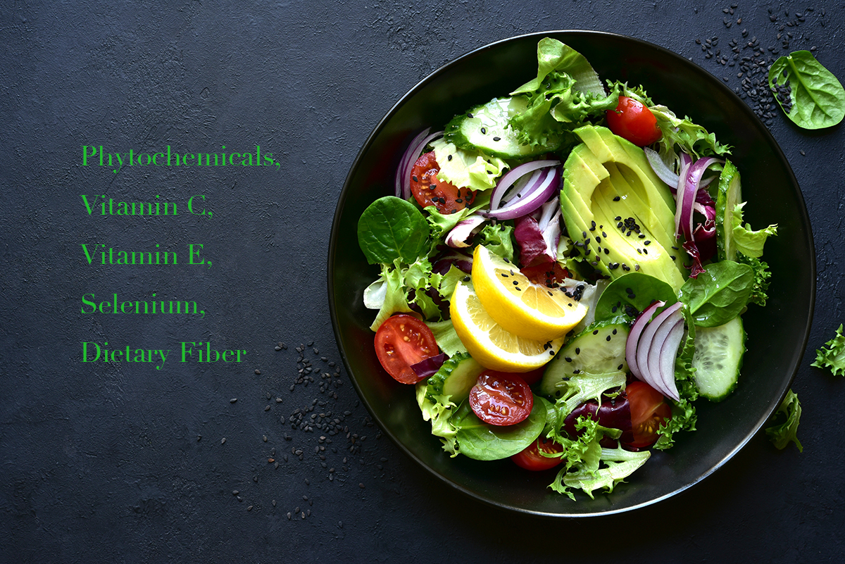 植物由来の抗酸化物質(ファイトケミカル)やビタミンC、ビタミンE、セレン、食物繊維などは、消化管における発ガンリスクを低減するとされています。