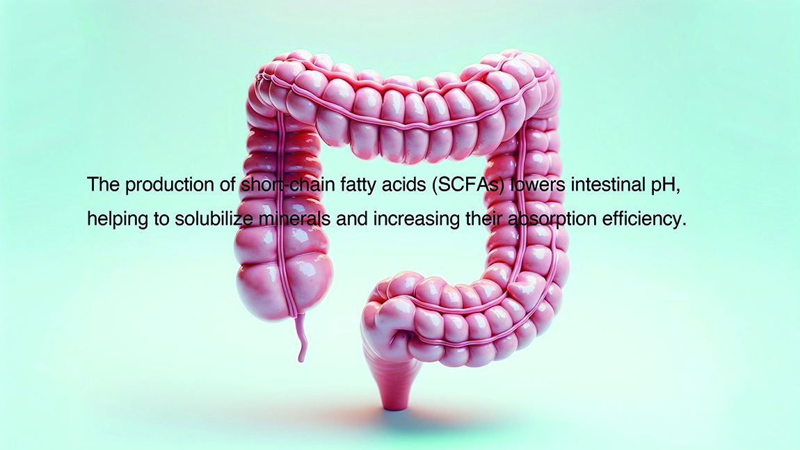 とくに短鎖脂肪酸(SCFA)の産生は、腸内pHを下げてミネラルの可溶化を助け、吸収効率を高めます。