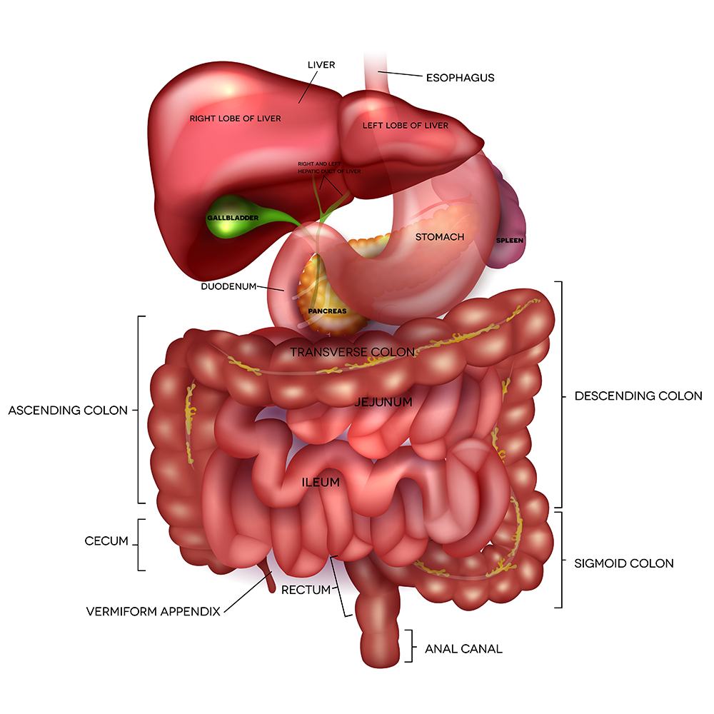 Gastrointestinal tract, liver, stomach and other surrounding organs
