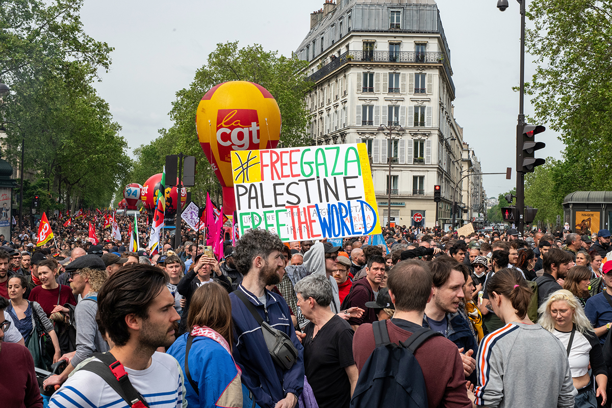 Paris, France, Europe, May 01 2024, demonstrators during the May 1 parade in Paris